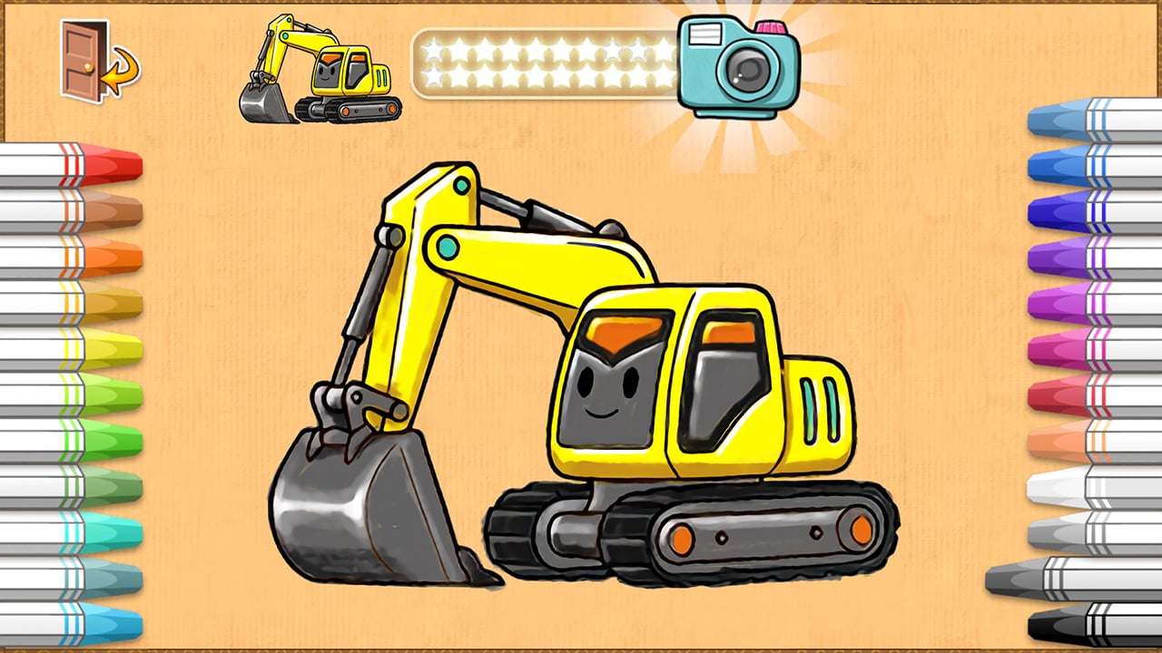 指先でクレヨンの質感をそのまま感じながら、タイヤからボディまで細かくぬりえできます。
