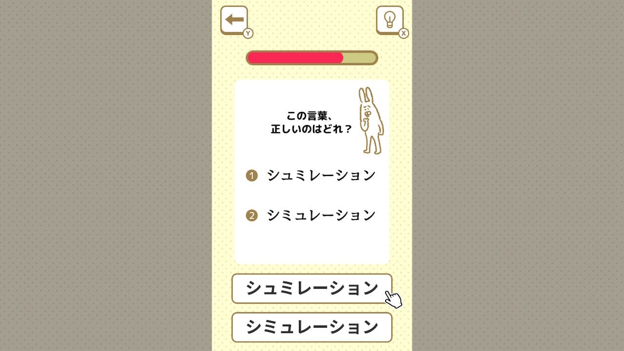 本作は、間違えやすい日本語を2択で答えていくクイズ形式の脳トレゲームです。