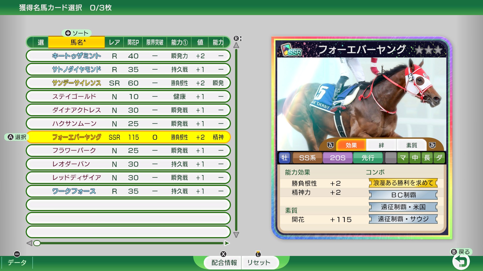 「最強馬ロード・オンライン」モードに、新レアリティ「SSR」の名馬カードが登場。SSRには競馬史に輝く超強力な名馬が登場。特大の「開花ポイント」を持つため、より強力な愛馬を育成できます。また、同じ名馬カードを重ねることで、大きく能力強化できる「限界突破」が可能に。配合に使用することで、さらに強力な愛馬を生産できます。