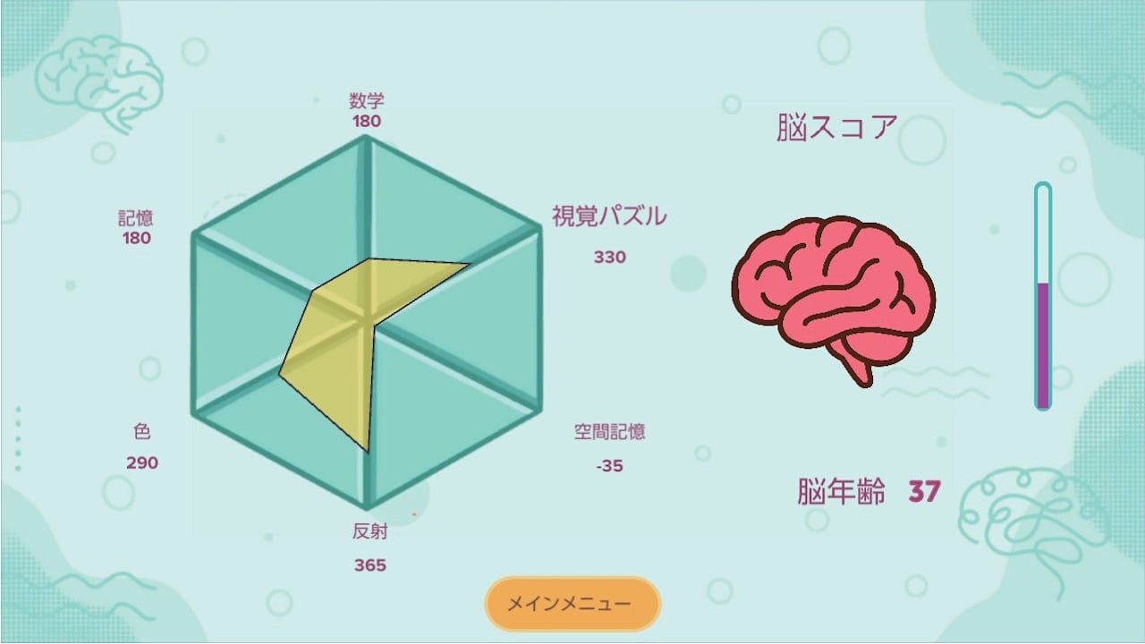 シングルプレイモードで自分のペースで脳を鍛えたり、サバイバルモードで全てのミニゲームを連続プレイし、あなたの「脳年齢」が計算されます!