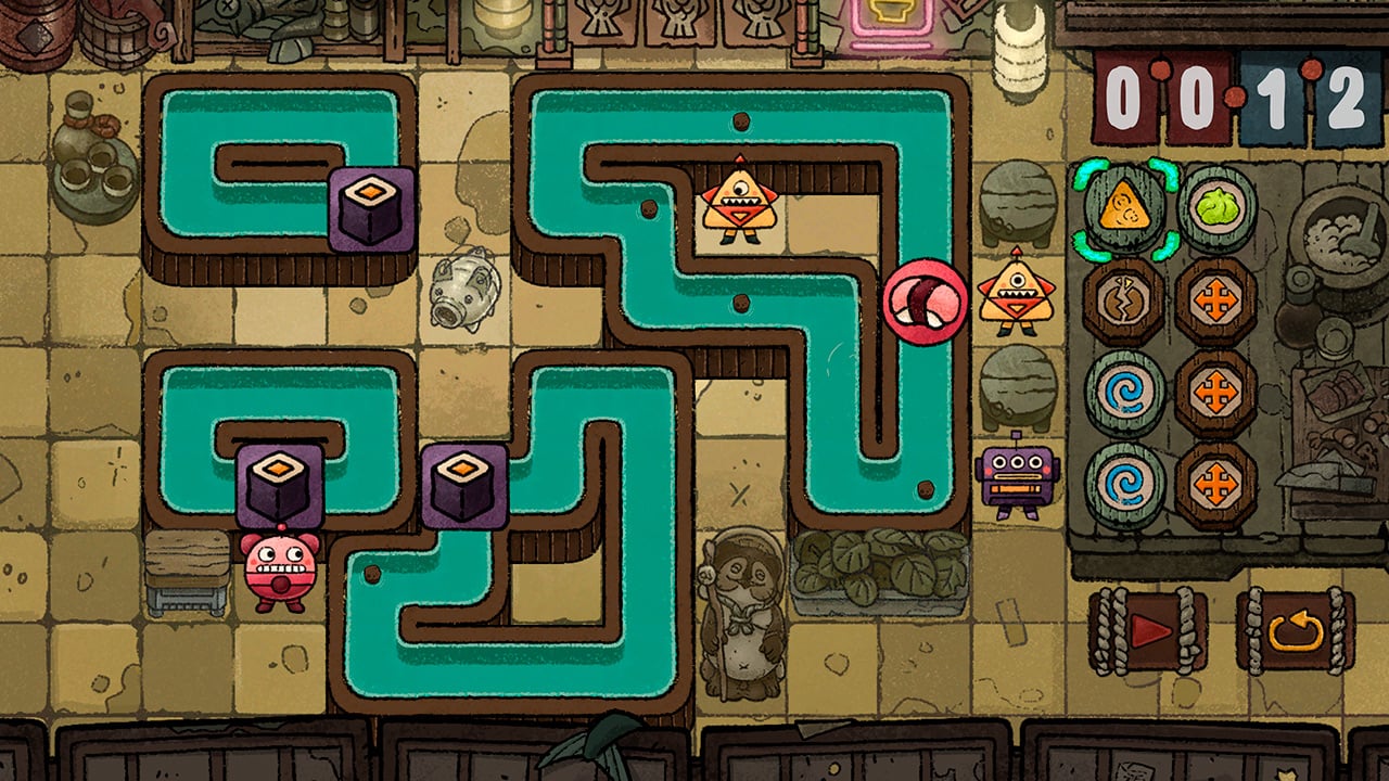 再生ボタンを押して、あなたの奇妙な装置が、お客さんに食事を時間通りに届けられるか試してみよう。また、チャレンジの合間には、毎週レストランに訪れる3人の友達の会話を聞くこともお忘れなく。彼らは複雑な陰謀に巻き込まれてしまうのだろうか?いいえ。これは、愉快なロボットの友達が繰り広げる、のんびりした物語だよ。