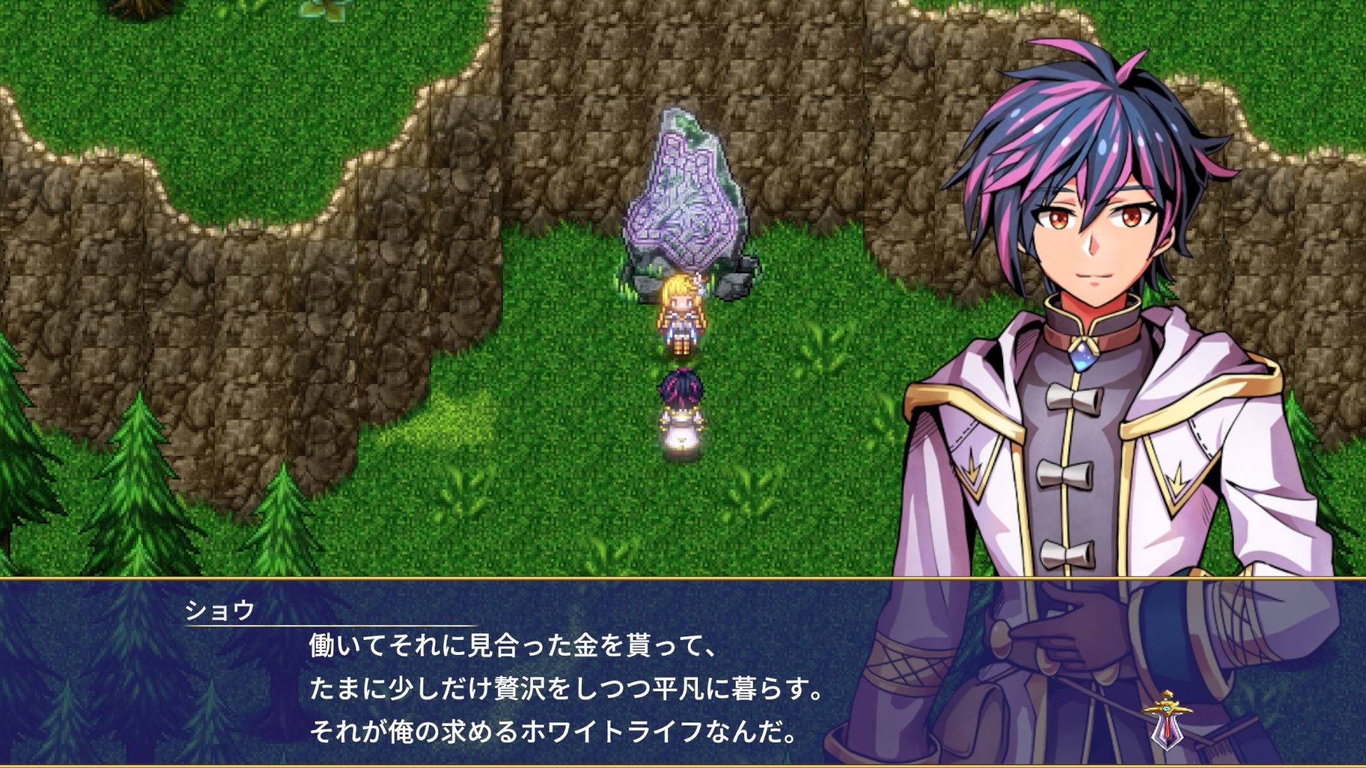 念願のホワイトライフを目指すショウだったが、勇者ビオラとの出会いから、魔王討伐へ歩み出すことになる。