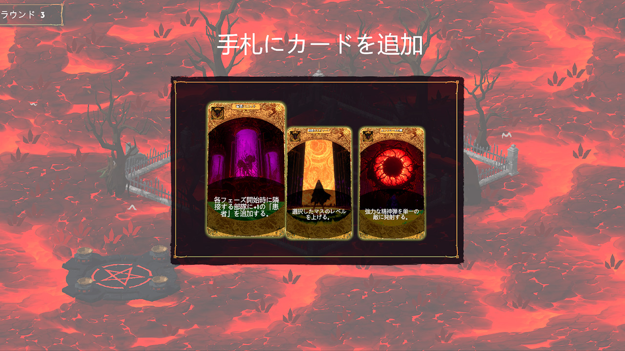 配置とタイミングが重要となる戦術的カード戦闘で、次々と現れる敵軍と対峙。