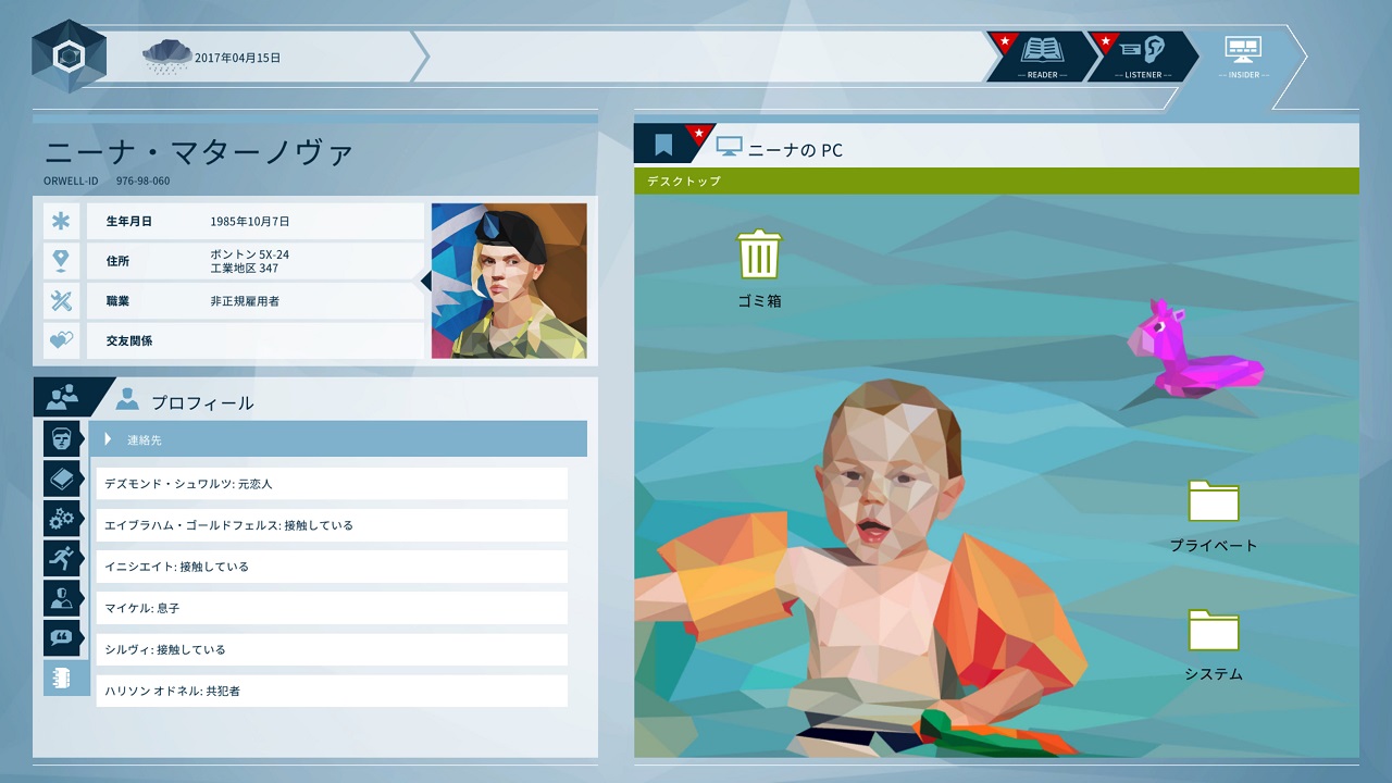 市民の生活を調査し、一連のテロ攻撃の犯人を見つけよう。インターネットからの情報、個人的な通信、個人的なファイルなど、すべてにアクセスすることができる。しかし警告しておくが、あなたが提供した情報は結果をもたらすだろう...。