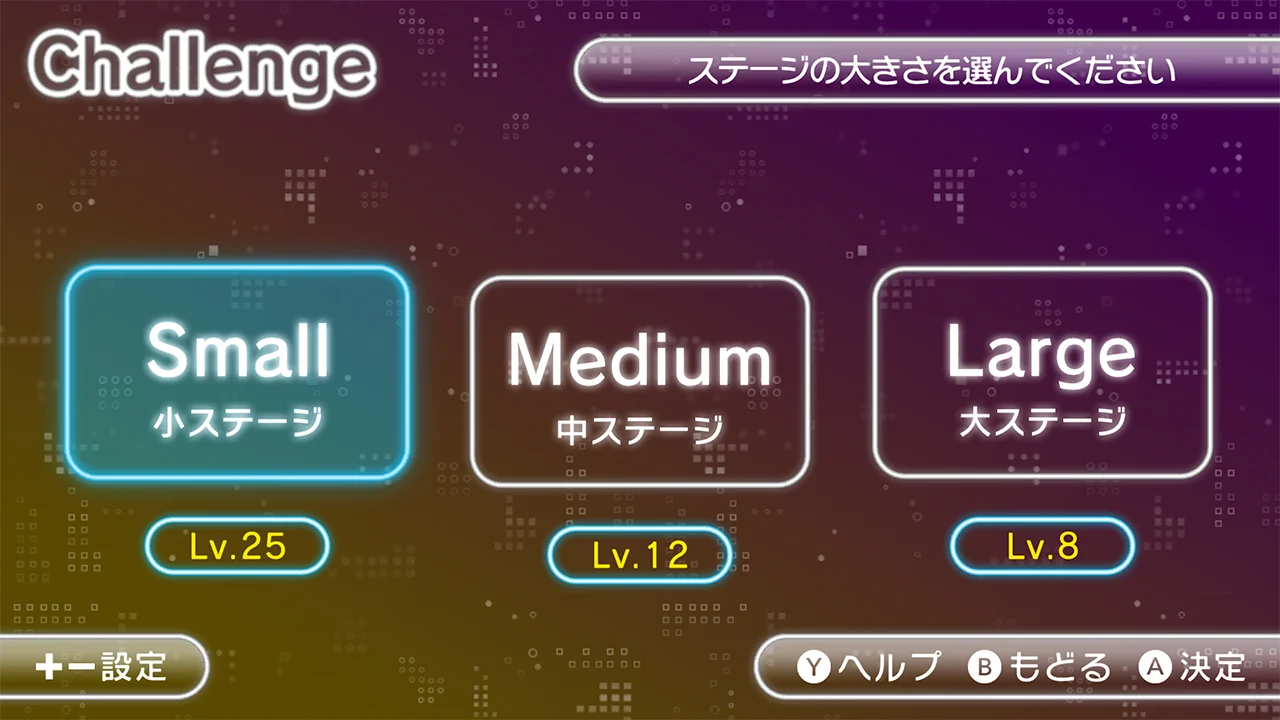 ステージサイズ、BGM、制限時間、プレイヤーカラーなど、