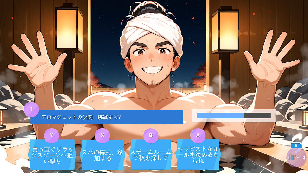 『スパマッサージ 美男子恋愛:リラックス』では、自信に満ちた魅力的な男性たちと特別な時間を過ごせます。心地よいマッサージミニゲームを楽しみながら、少し大胆な会話や選択肢を通して距離を縮めていきましょう。