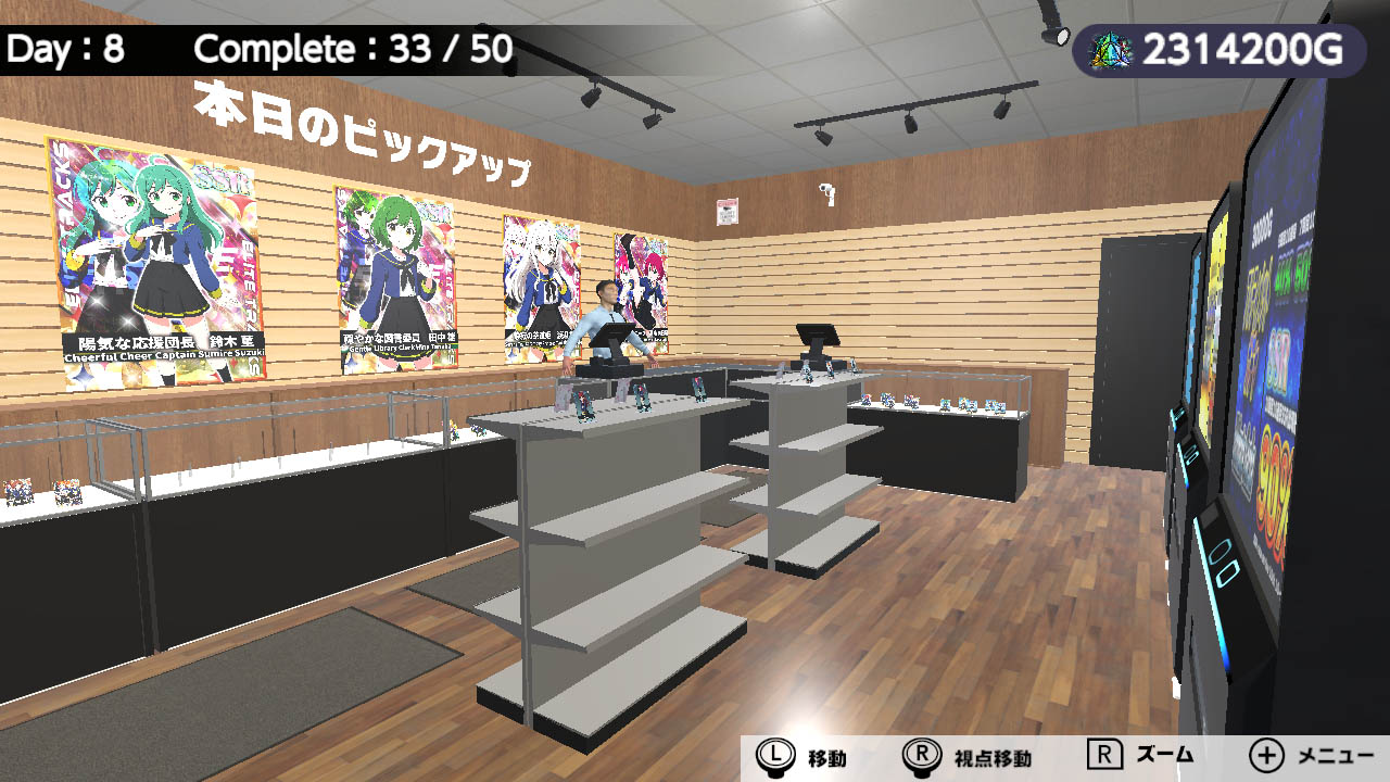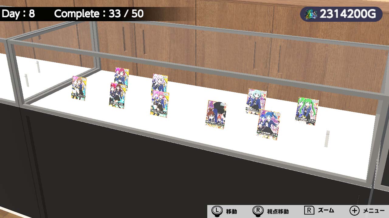 カードをショーケースに展示したり、店員とやり取りしたり、集めるほどに“コレクション感”が増していきます。