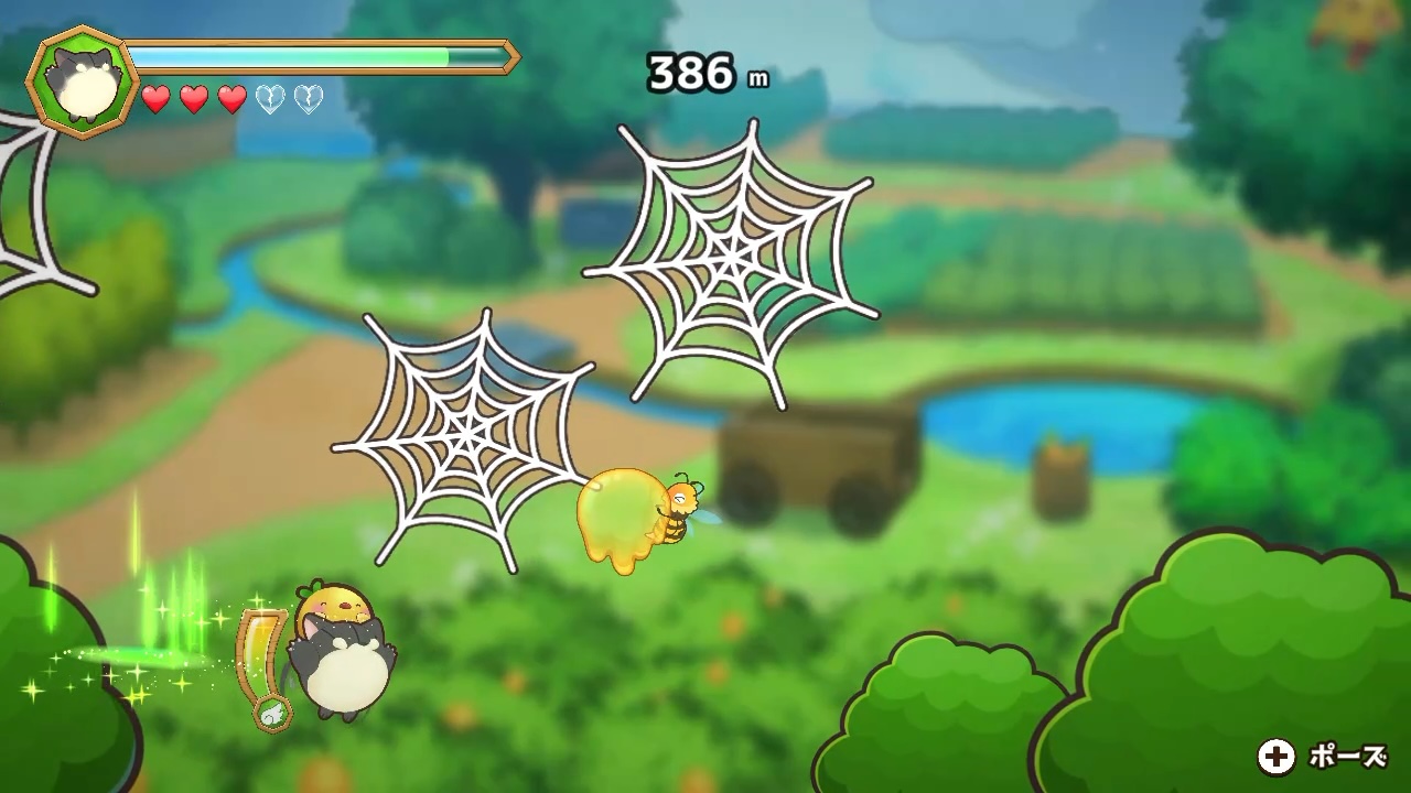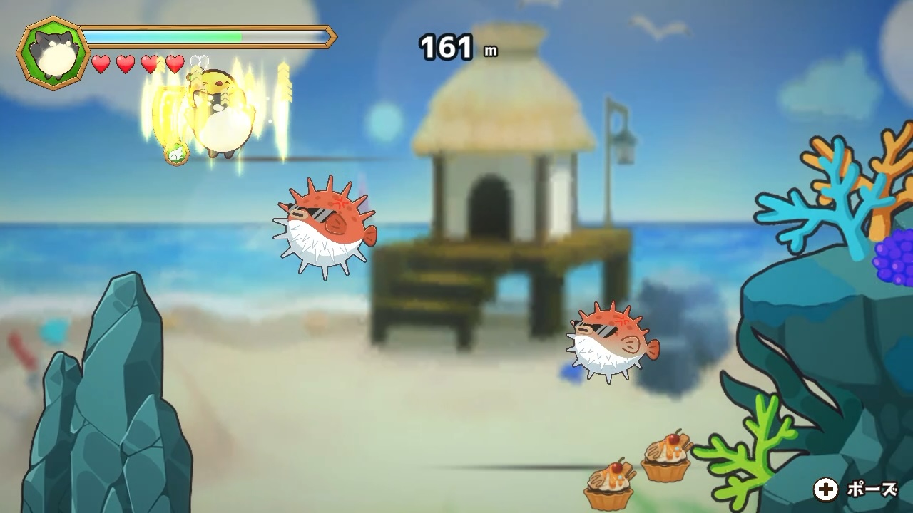 各ステージには固有のギミックがあり、敵や岩・木などの障害物に触れるとダメージを受けたり、スピードが遅くなったりします。