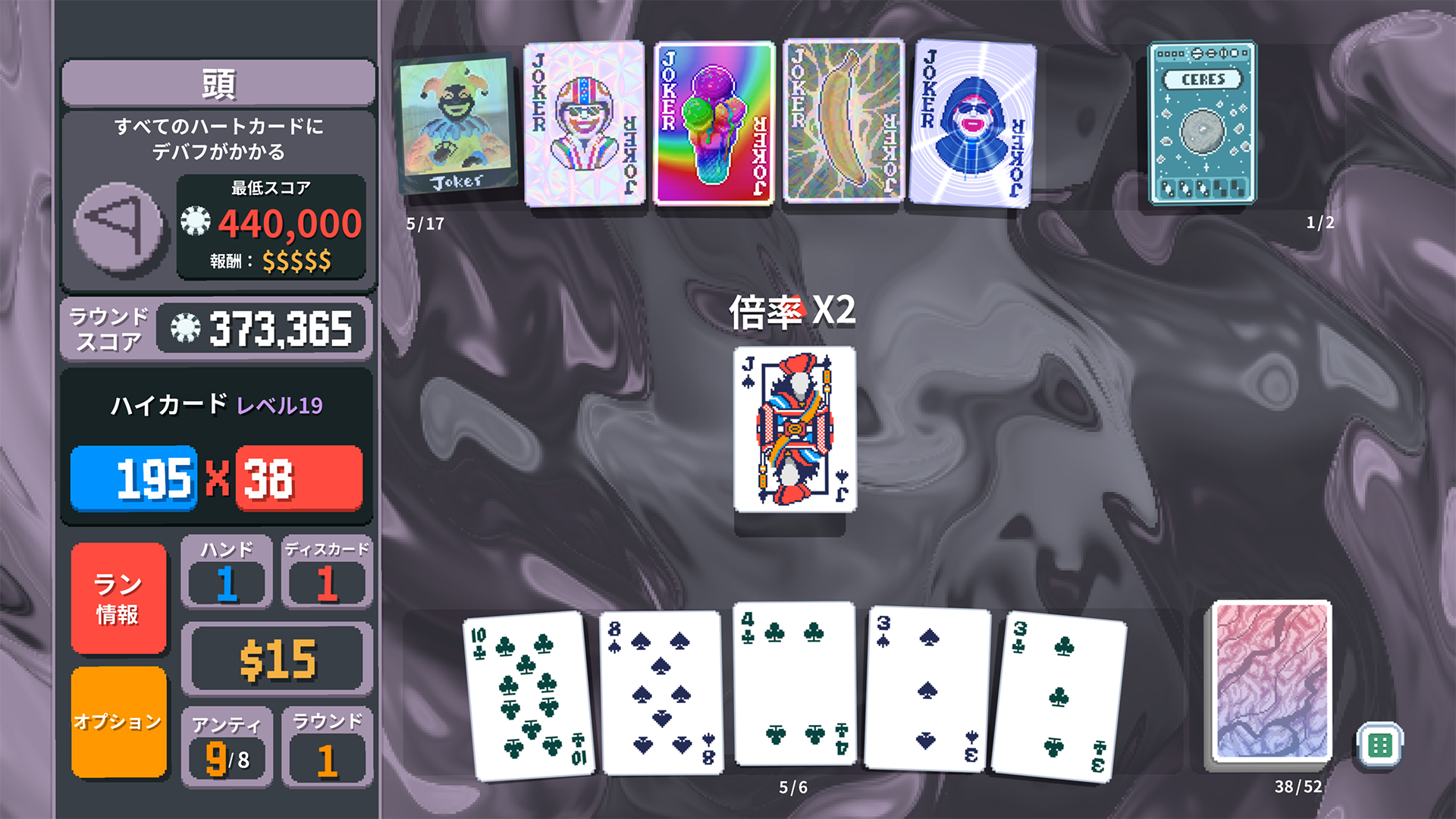 ポーカーとローグライクが融合されたBalatroは、満足度いっぱいのデッキビルダーゲームです。違法ポーカー・ハンドを出して、ゲームチェンジャーのジョーカーを発見して、アドレナリン全開の強烈コンボを繰り出しましょう!