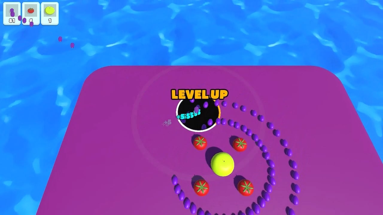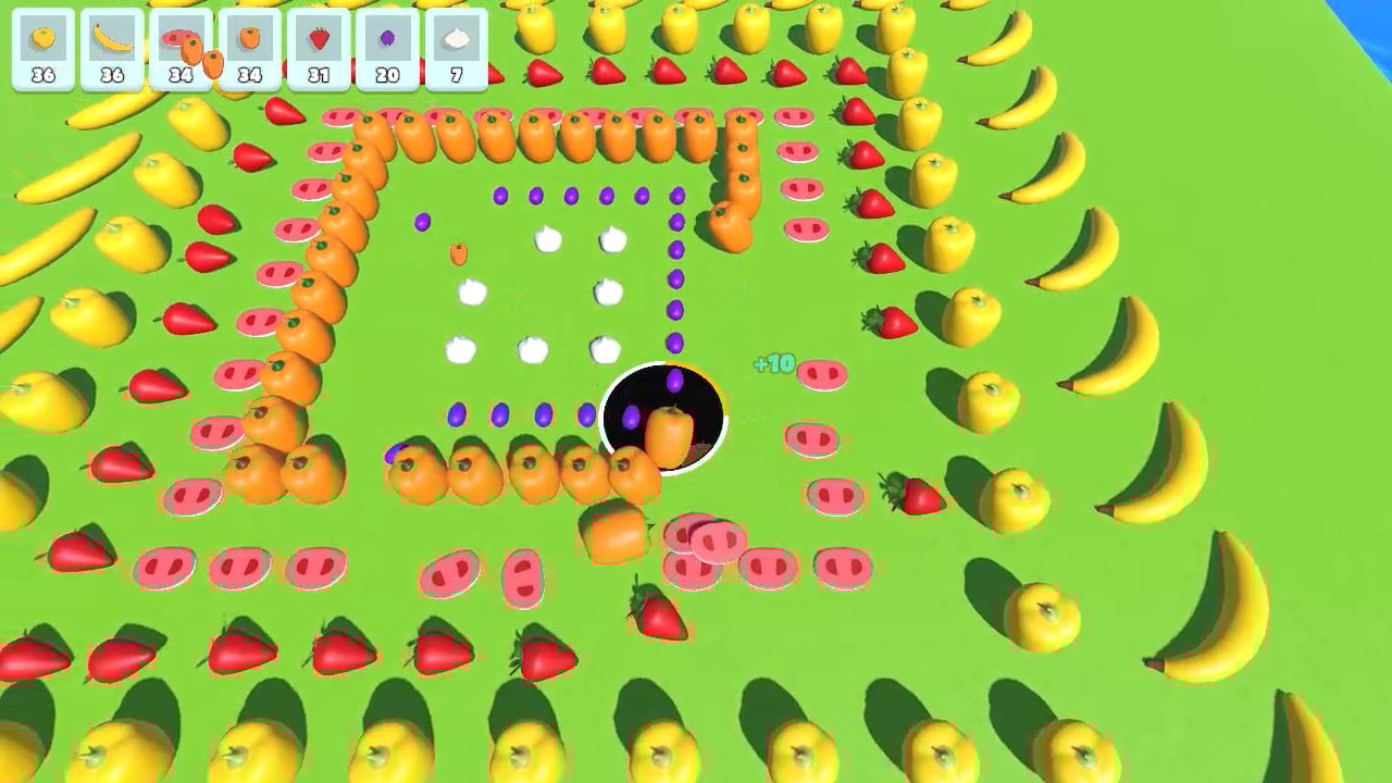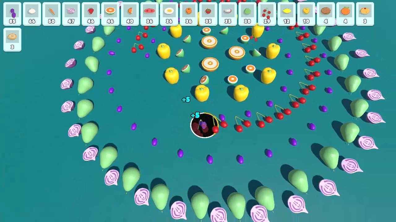 フルーツを食べ続けることで穴は徐々に大きくなり、より大きく複雑な形を飲み込めるようになります。最初は小さな一口サイズだったものが、やがて成長と勢いのある、非常に満足感の高い流れへと変化していきます。島中のフルーツをすべて吸収すると次へ進み、新しいレイアウトが無限に続き、リラックスし、集中し、この心地よい循環を繰り返せます。
