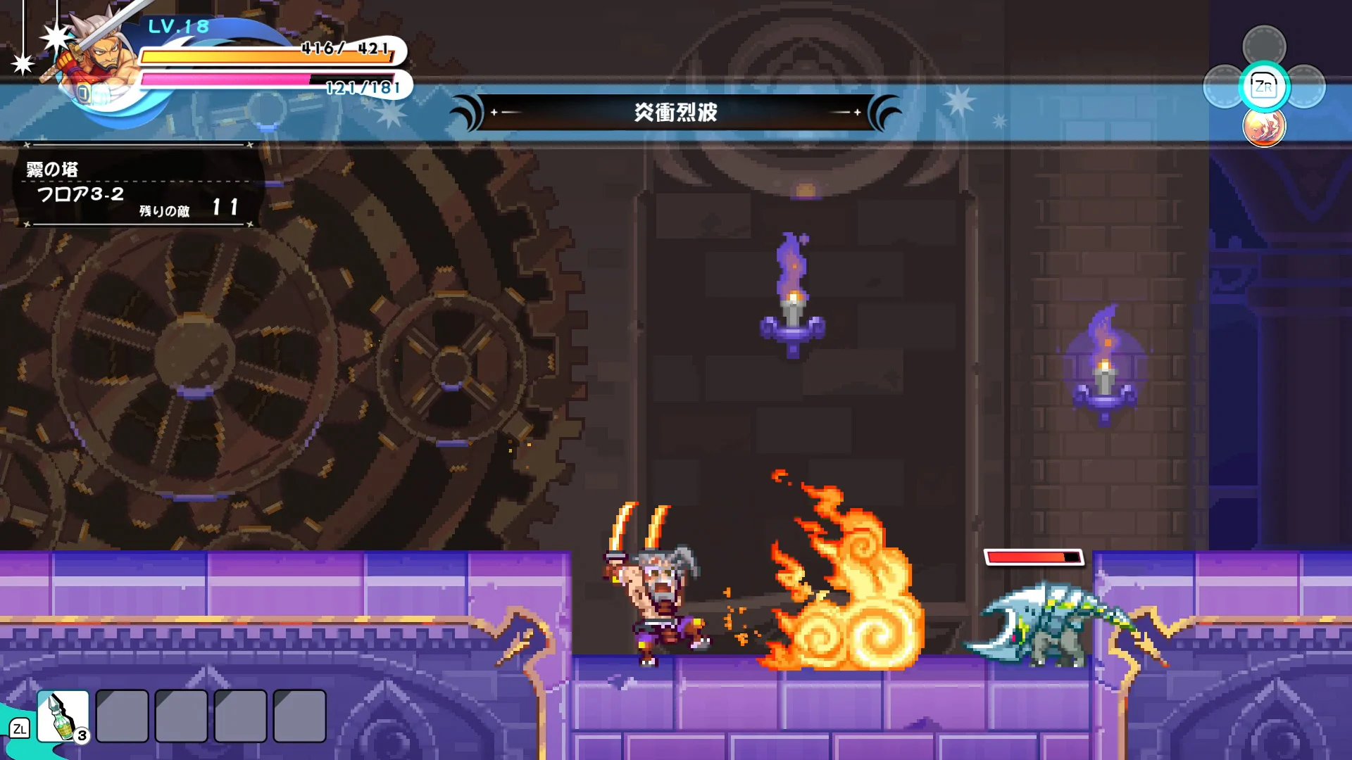2D横スクロールアクションの冒険で素材を集め、王国を復興するシミュレーションパートでキャラクターたちを育てて王国を復興しよう!