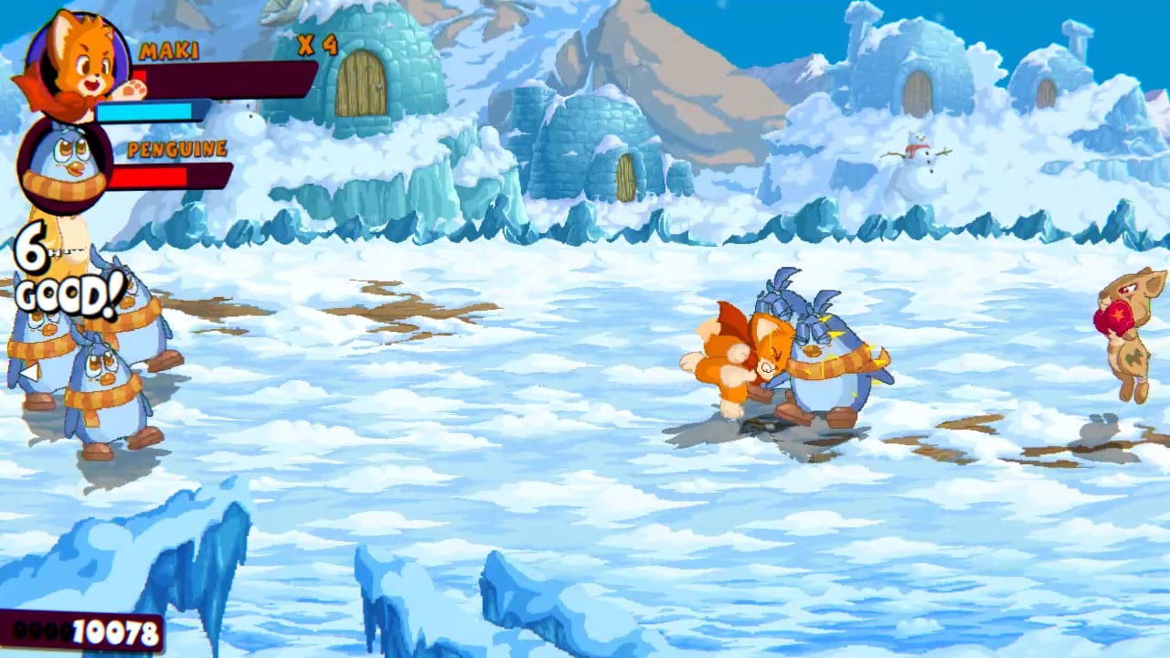 90年代の動物スタイルを感じて — 「Maki: Paw of Fury」の戦闘要素は、90年代の大ヒット清版アーケードゲームからインスピレーションを得ています。物語の舞台は独自の世界「パンゲア」で、ここでは動物たちが支配し、スポーツや技術、そして一生続く友情に情熱を燃やしています。ちなみにその友情のひとつが今、破綻の危機に瀕しています!