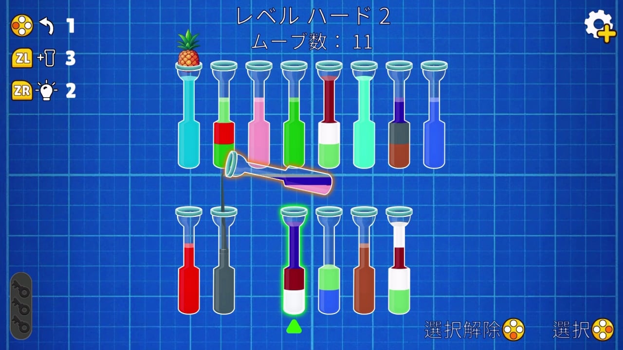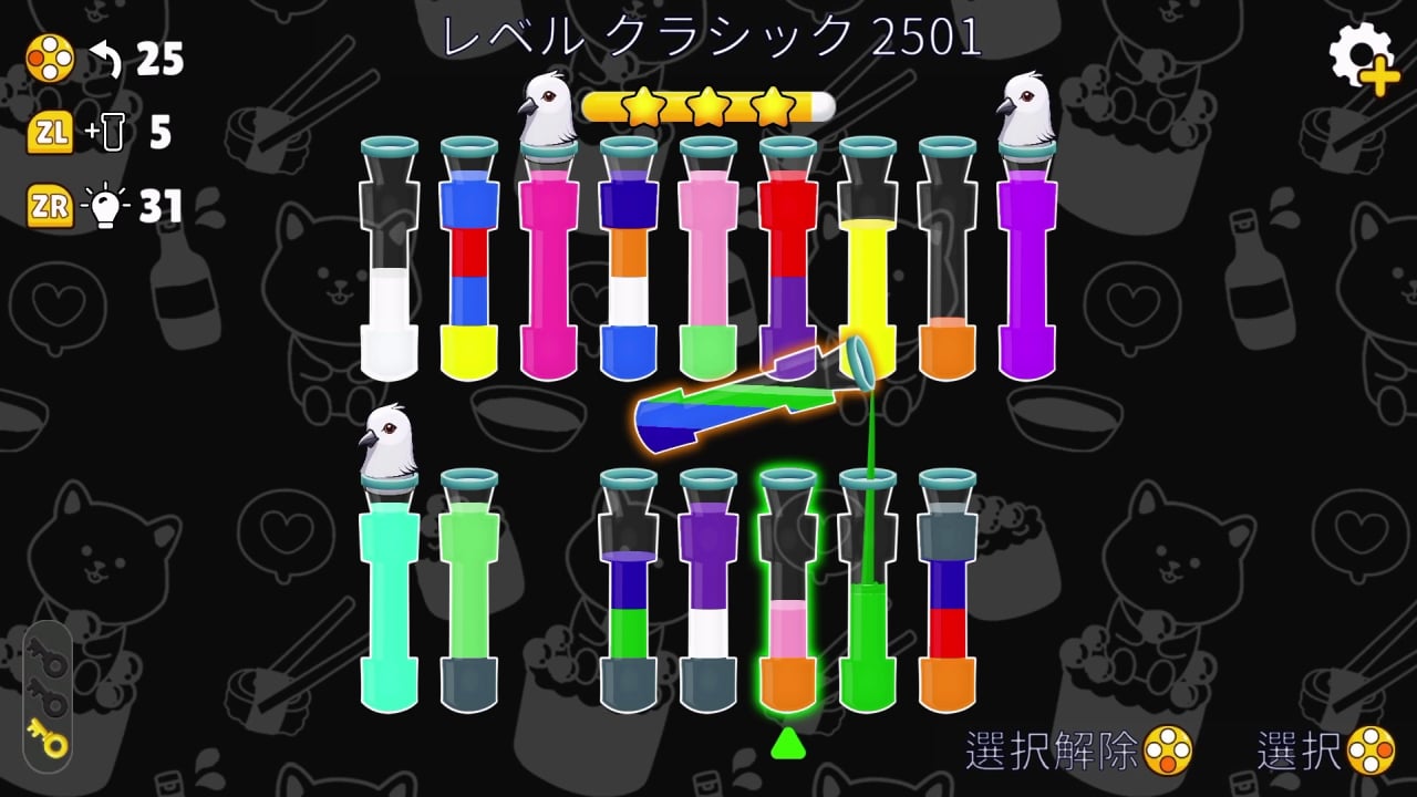 頭を使って色付きの液体を並べ替え、ユニークなパズルを解こう!