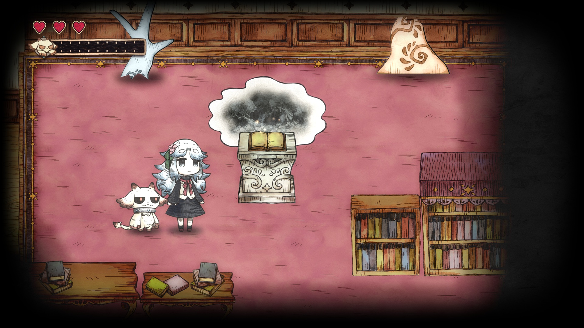 主人公である少女モノを操作し相棒メェルに指示を出すことで、「本」の世界に散りばめられたギミックを解くことができます。